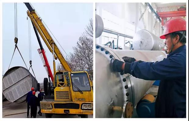 大型设备正在装车发货,车间一线工人在进行产品制作